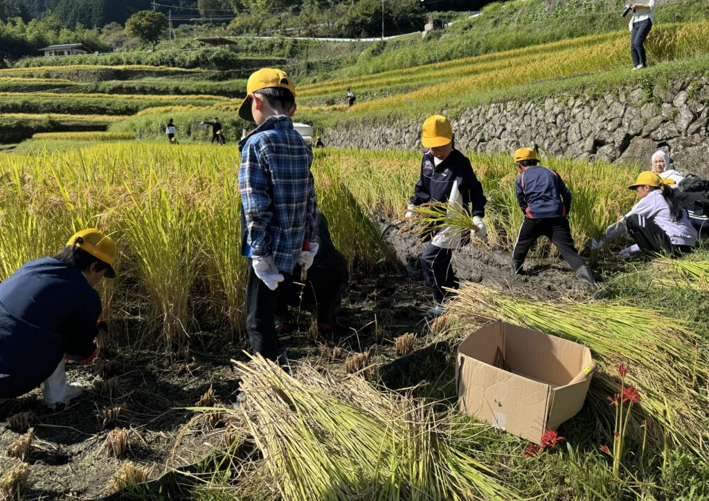 棚田100選にも選ばれた、坂折棚田で稲刈り体験。